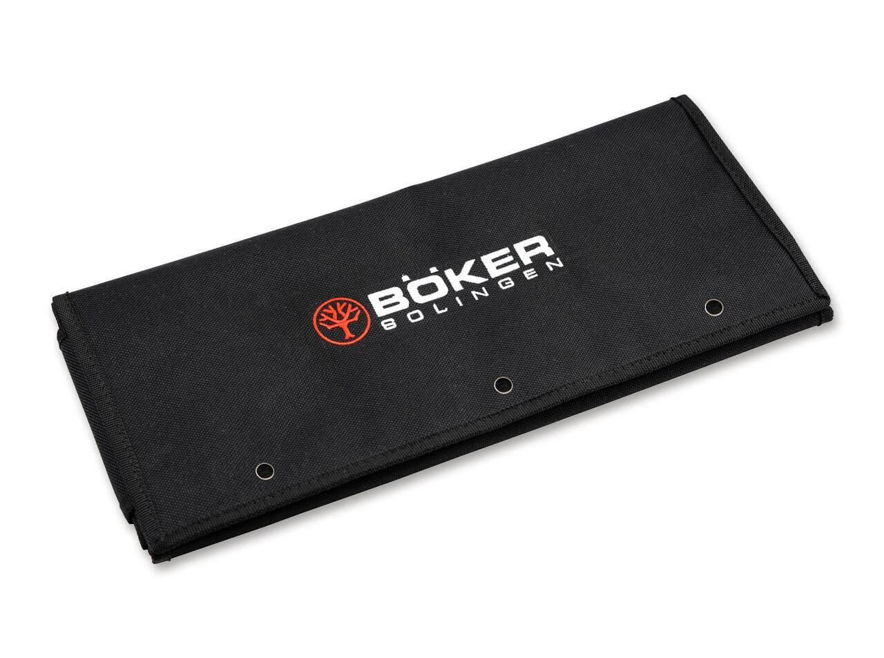 Der praktische Böker Knife Vault Organizer sorgt für Ordnung in Ihrer Sammlung. Um Ihre wertvolle Taschenmessersammlung während der Lagerung oder des Transports vor Kratzern, Schrammen und Schmutz zu schützen, bietet der Messer-Organizer 18 separate Fächer mit einer transparenten Wand. Die äußeren Fächer sind extra breit, so dass auch größere, geschlossene Messer problemlos untergebracht werden können. Die große Klettverschlussklappe hat drei Hohlnieten, so dass der Organizer an der Wand aufgehängt werden kann, um bis zu 18 Taschenmesser repräsentativ zu präsentieren. Ein herausnehmbares Klettfach bietet Platz für Visitenkarten oder Notizblöcke, während die Klettfläche alternativ für Aufnäher genutzt werden kann. Ein gesticktes Böker-Logo rundet den dezenten Look der schwarzen Messertasche elegant ab.