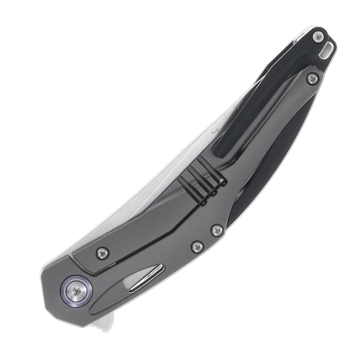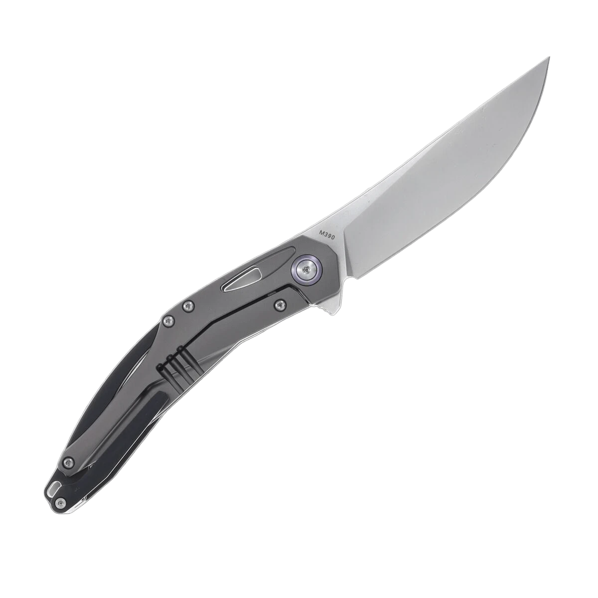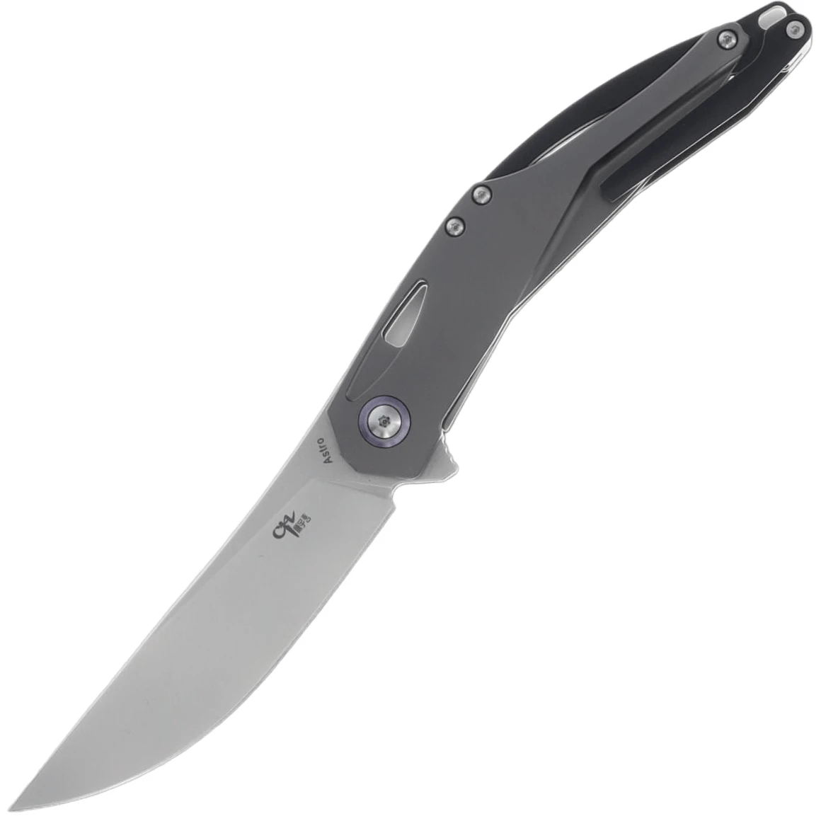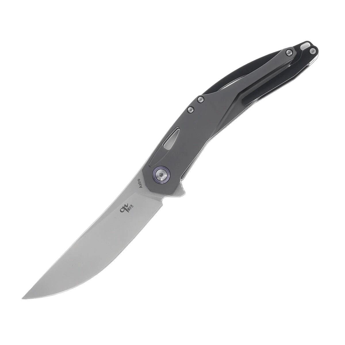 CH Knives Astro Gray Titanium hat eine 9,4 cm lange Klinge aus rostfreiem Bohler M390 Stahl mit perlgestrahlter Oberfläche. Es handelt sich um ein EDC-Messer mit einer Flipper-Öffnung und einer leichtgängigen, auf Kugellagern gelagerten Klinge. Der Griff ist aus grauem Titan und erinnert an die kühle Schönheit des Weltraums. Der Hersteller ließ sich bei der Gestaltung vom Universum inspirieren. Das Messer verfügt über einen Titan-Taschenclip, elegante Aussparungen zur Gewichtsreduzierung und ein Lanyard-Loch. Geschlossen ist es 12,4 cm lang und wiegt 96 g.