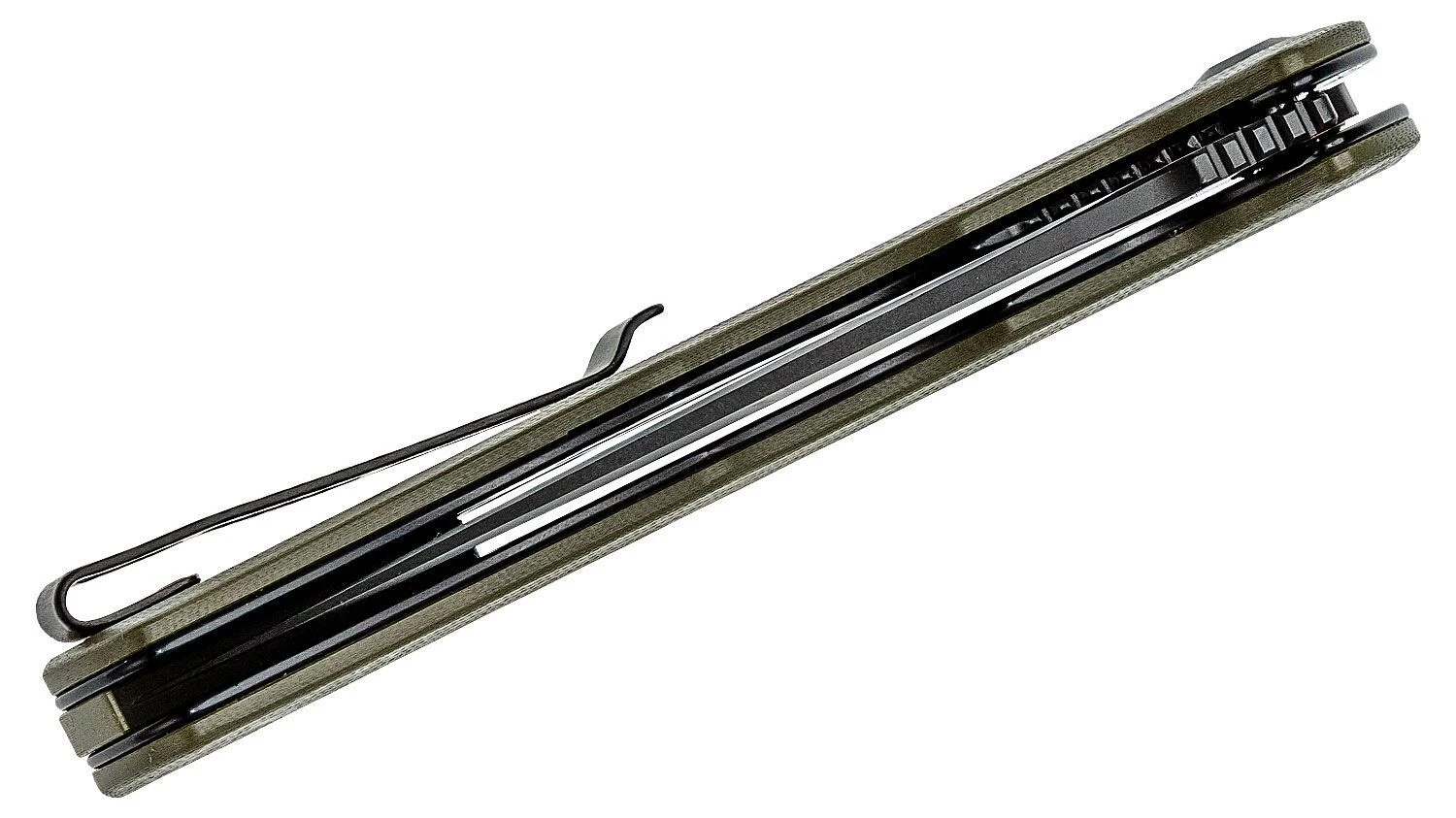 Die Klinge ist aus rostfreiem 9Cr18MoV-Stahl gefertigt und schwarz lackiert. Das Messer öffnet sich mit einem Flipper und wird durch eine Liner Lock Sicherung in der offenen Position gehalten. Der Griff ist aus strapazierfähigem G10-Material gefertigt. Das Messer ist mit einem Clip zum Tragen in einer Tasche ausgestattet.
