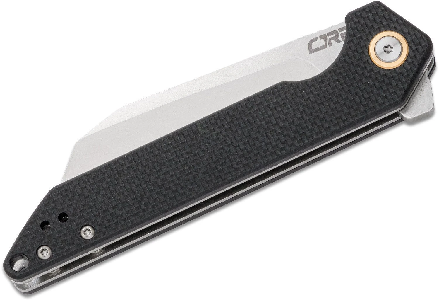 Das Rampart Messer von CJRB ist eine ungewöhnliche Mischung aus einem schlanken Profil und einem großen Schwung in einem Messer. Die breite Wharncliffe-Klinge mit Stonewash-Finish ist ideal für Aufgaben, die Schneiden und Schneiden erfordern.