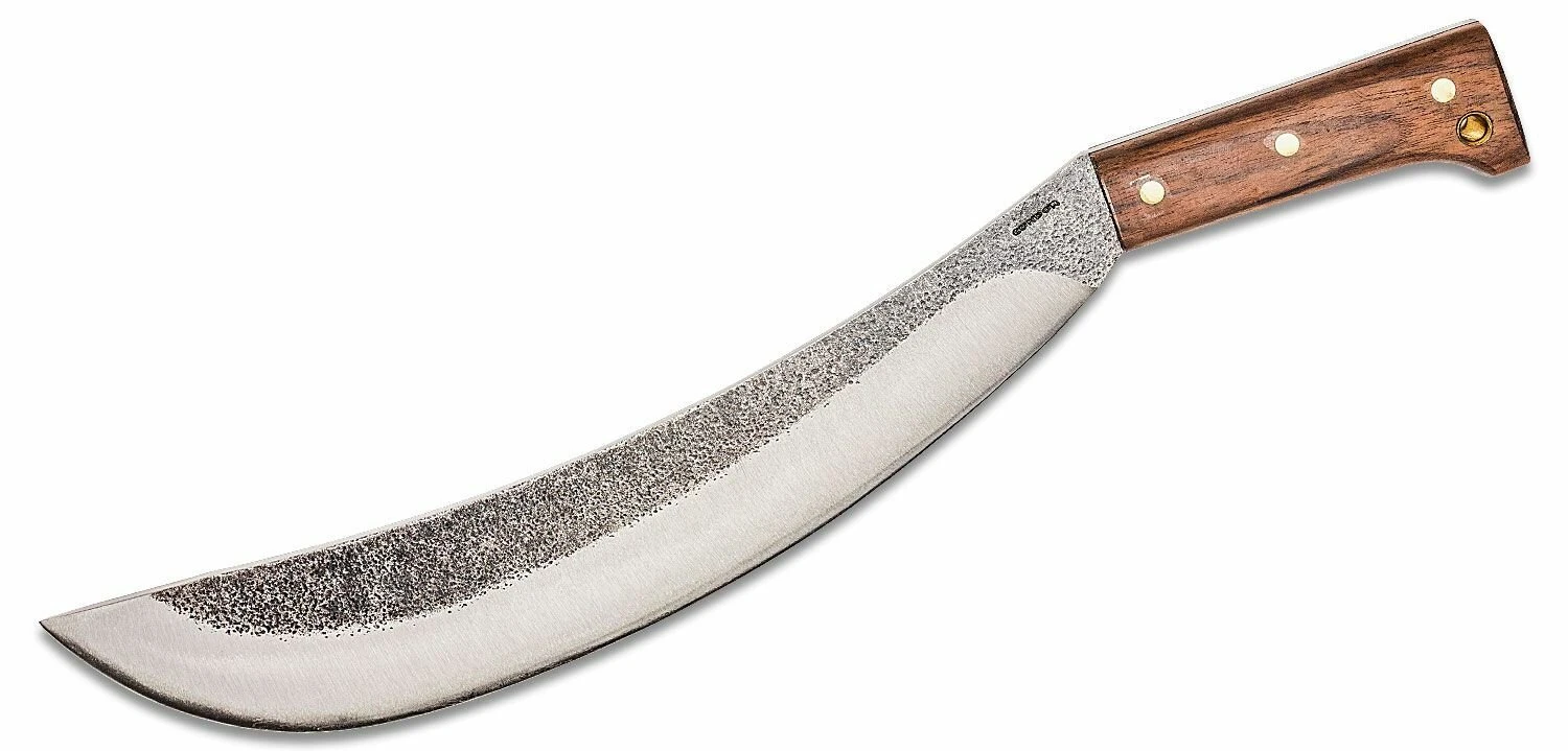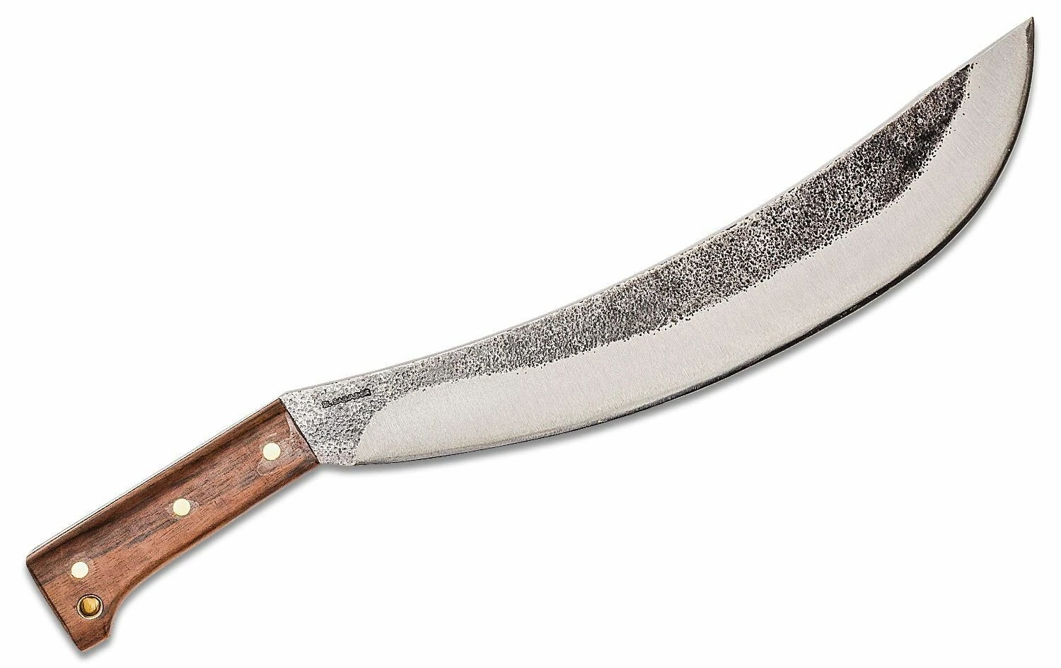 Die Engineer Bolo Machete hat eine Klinge aus 1075 Kohlenstoffstahl. Der Griff ist aus robustem und hartem Holz gefertigt.