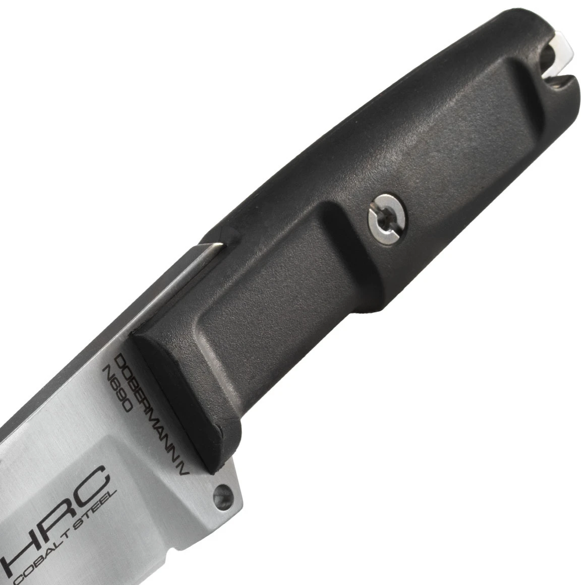 Das Universalmesser Extrema Ratio DOBERMANN IV CLASSIC SATIN wurde auf Basis des ersten und traditionellsten Messers Extrema Ratio K1 DOBERMANN entwickelt. Es ist für Camping, Jagd, Überleben und militärische Zwecke geeignet. Bohler N690 Klinge aus glattem Stahl mit satiniertem Finish. Der Griff besteht aus schwarzem wasserdichtem Forprene mit einem Loch für eine Schnur. Kommt mit einer Ledertasche.