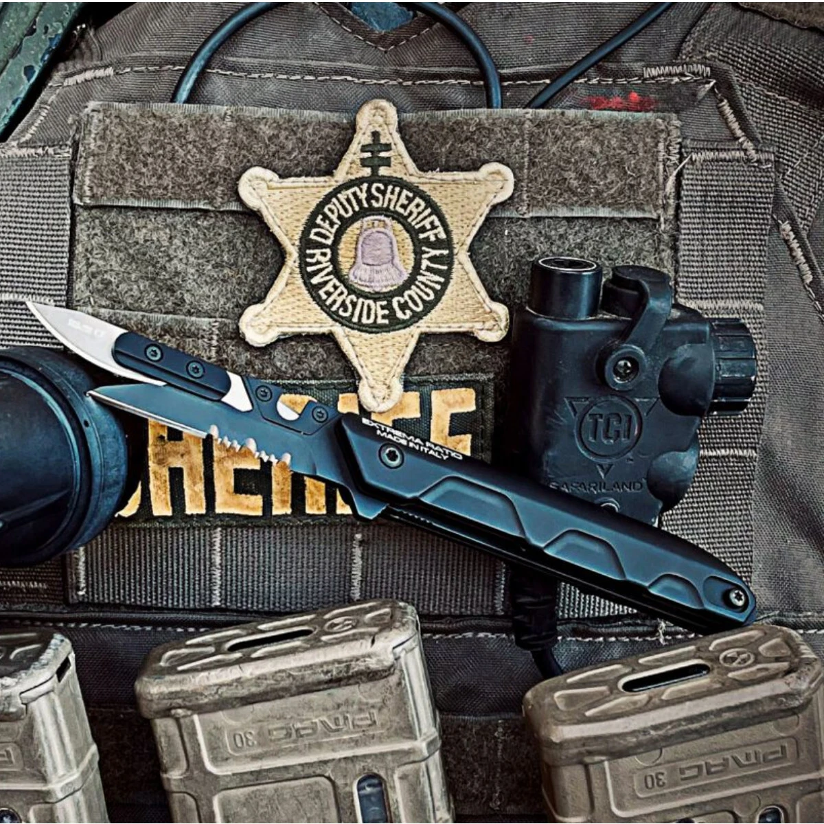 Die Expedition Series ist eine neue Serie von Werkzeugen, die für professionelle Entdecker entwickelt wurde. Das Modell des Klappmessers, das RAO II Expeditions, wurde vom Modell RAO mit einer Tanto-Klinge inspiriert, die vom italienischen 185° Rgt verwendet wurde. Recognizione e Acquisizione Obiettivi „FOLGORE“ (185° RAO). Die Klinge, hergestellt aus hochwertigem N690-Stahl, wird manuell geöffnet. In der geöffneten Position wird sie von einem festen Verriegelungsmechanismus gehalten, der durch einen Sicherungsstift ergänzt wird, der das Schließen der Klinge auch bei Schnitten, Batoning und anderen anspruchsvollen Aufgaben verhindert. Der Griff ist aus leichtem Aluminium gefertigt. Das Messer ist nicht mit einem Clip zum Tragen in der Tasche ausgestattet. Im Lieferumfang enthalten sind ein Feuerstahl, ein Diamantschleifstein und ein Cordura-Holster, das mit dem MOLLE-System kompatibel ist. Die Klappe wird mit einer Fastex-Schnalle geschlossen und verbirgt 2 Fächer für das Messer und den Schleifstein. Das Holster bietet auch eine Hülle, um das Messer als Feststehmesser zu tragen.