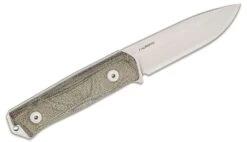 Die Klinge ist aus hochlegiertem Sleipner-Werkzeugstahl gefertigt. Der geformte Griff aus strapazierfähigem Micarta bietet einen hervorragenden Halt. Am Ende des Griffs befindet sich ein Loch für ein Schlüsselband. Eine Lederscheide wird mit dem Messer geliefert.