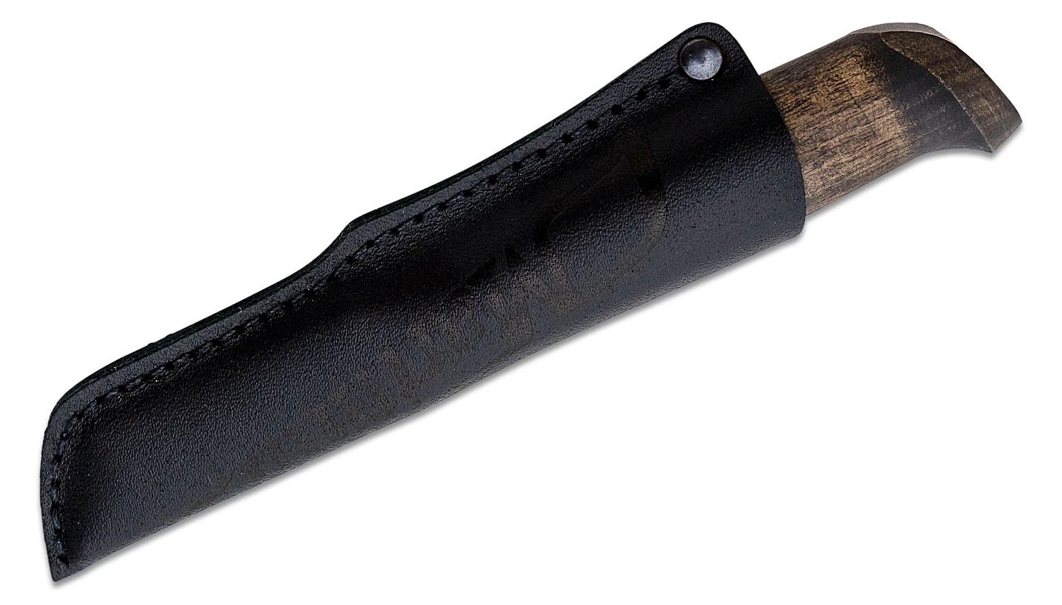 Die kurze Klinge ist aus einem zähen Kohlenstoffstahl gefertigt. Sie ist ideal für extrem präzise Arbeiten und Schnitzereien. Der Griff ist aus Birkenholz gefertigt und mit einer gewachsten Oberfläche versehen, die für mehr Griffigkeit und Haltbarkeit sorgt.