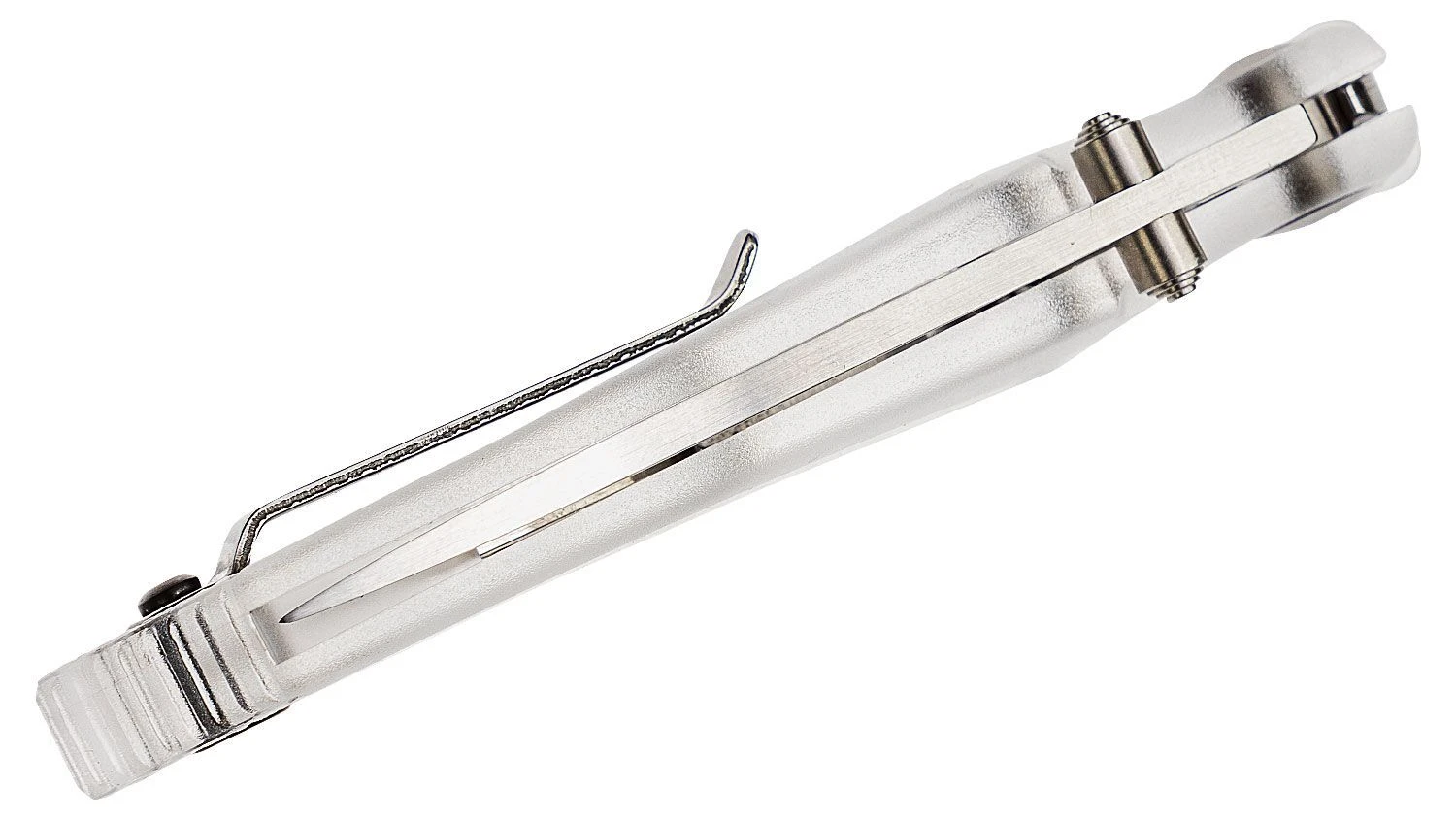 Die Klinge aus rostfreiem Stahl 1.4116 lässt sich mit einem Stift an der Klinge öffnen und wird durch eine Rückensperre in der offenen Position gehalten. Der geformte Griff, der von den Serien Cerberus und Spec Plus-Alpha inspiriert ist, besteht aus durchscheinendem Kunststoff. Am Ende des Griffs befindet sich ein Loch für ein Schlüsselband. Das Messer ist mit einem Clip zum Tragen in einer Tasche ausgestattet.