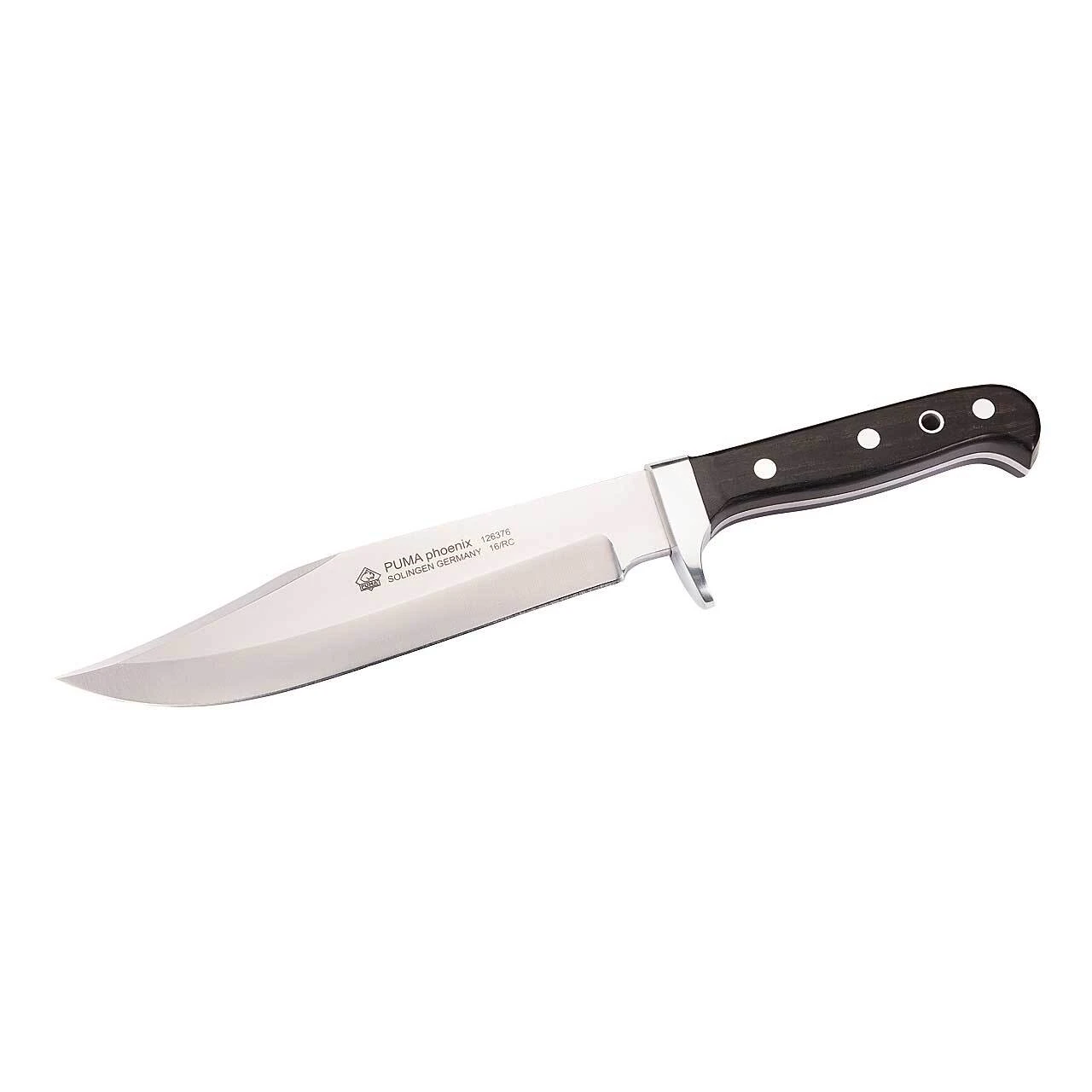 Mit diesem Modell wird ein echtes amerikanisches klassisches Bowiemesser wiederbelebt. Der Name wurde passend gewählt – das Modell ist nach der Stadt PHOENIX in Arizona benannt. Die typische Klingenform besteht aus Edelstahl 1.4116 und bietet eine Härte von 55-57 HRC. Als Mantelmaterial wurde dunkles Ebenholz verwendet, was einen attraktiven Kontrast zwischen der Klinge und dem Aluminiumabscheider darstellt. Das Paket beinhaltet eine hochwertige Sattellederjacke.
