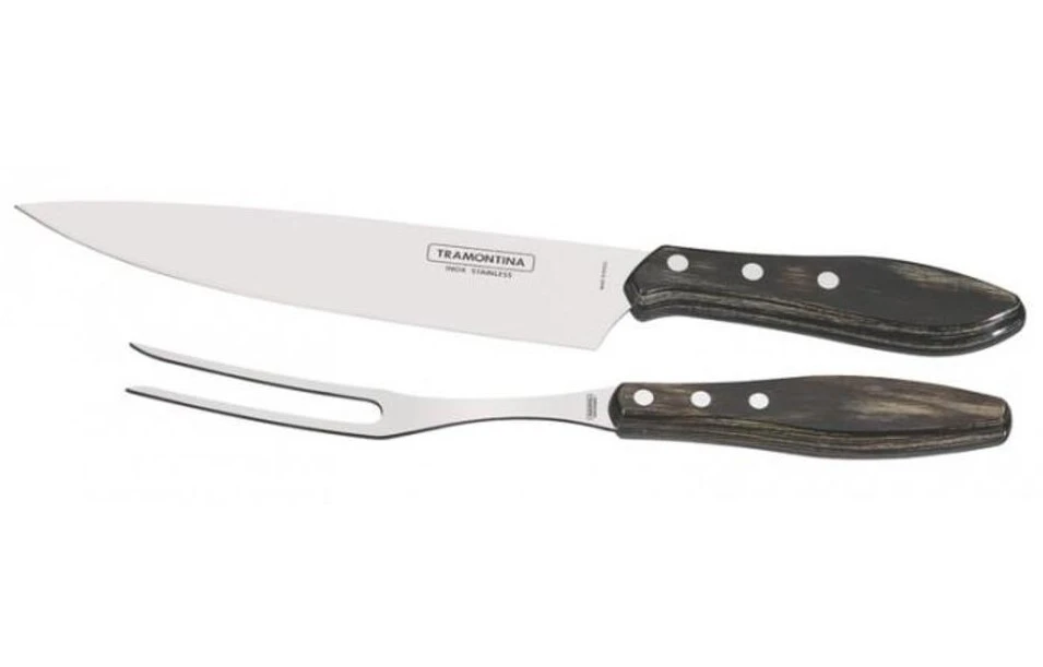 Das Tramontina-Edelstahlset besteht aus einer Gabel und einem Messer mit einer glatten, soliden Klinge aus brasilianischem, hochwertigem Edelstahl, der im Laufe der Zeit korrosions- und rostbeständig ist.