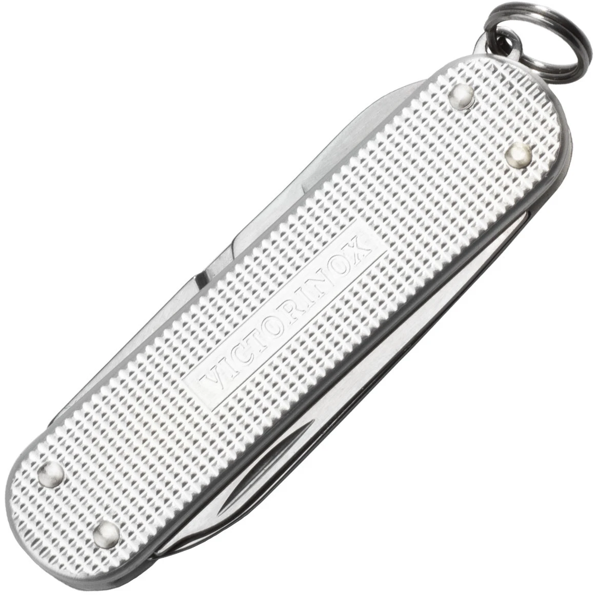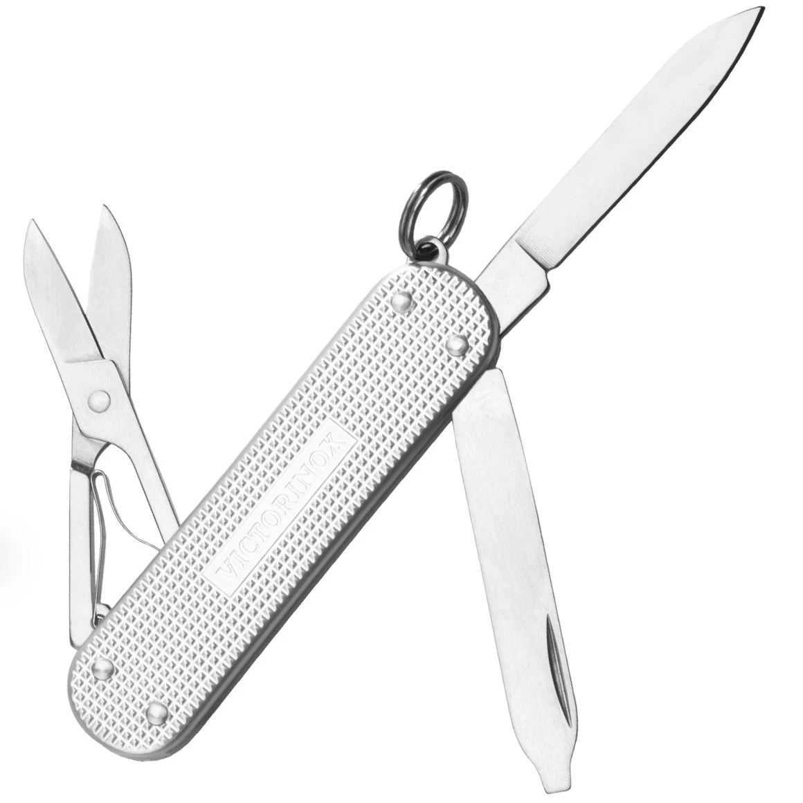 Victorinox Classic Alox Silver Schweizer Taschenmesser mit kompakter Größe und geringem Gewicht zum Mitnehmen von Schlüsseln. In silberner Farbe.